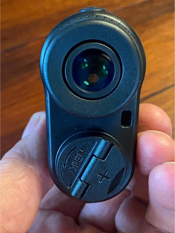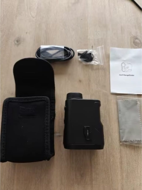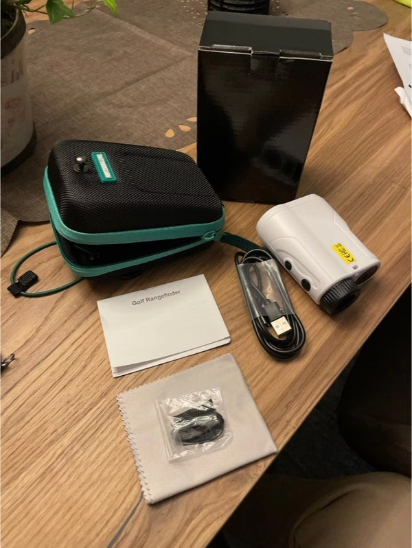 The rangefinder is built with a shock-resistant body and light water resistance, making it reliable in typical on-course conditions.