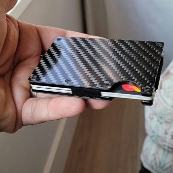 Slide it easily into your front pocket without bulk or discomfort. The Fortura Carbon Shield is built for effortless everyday carry while keeping your essentials secure.