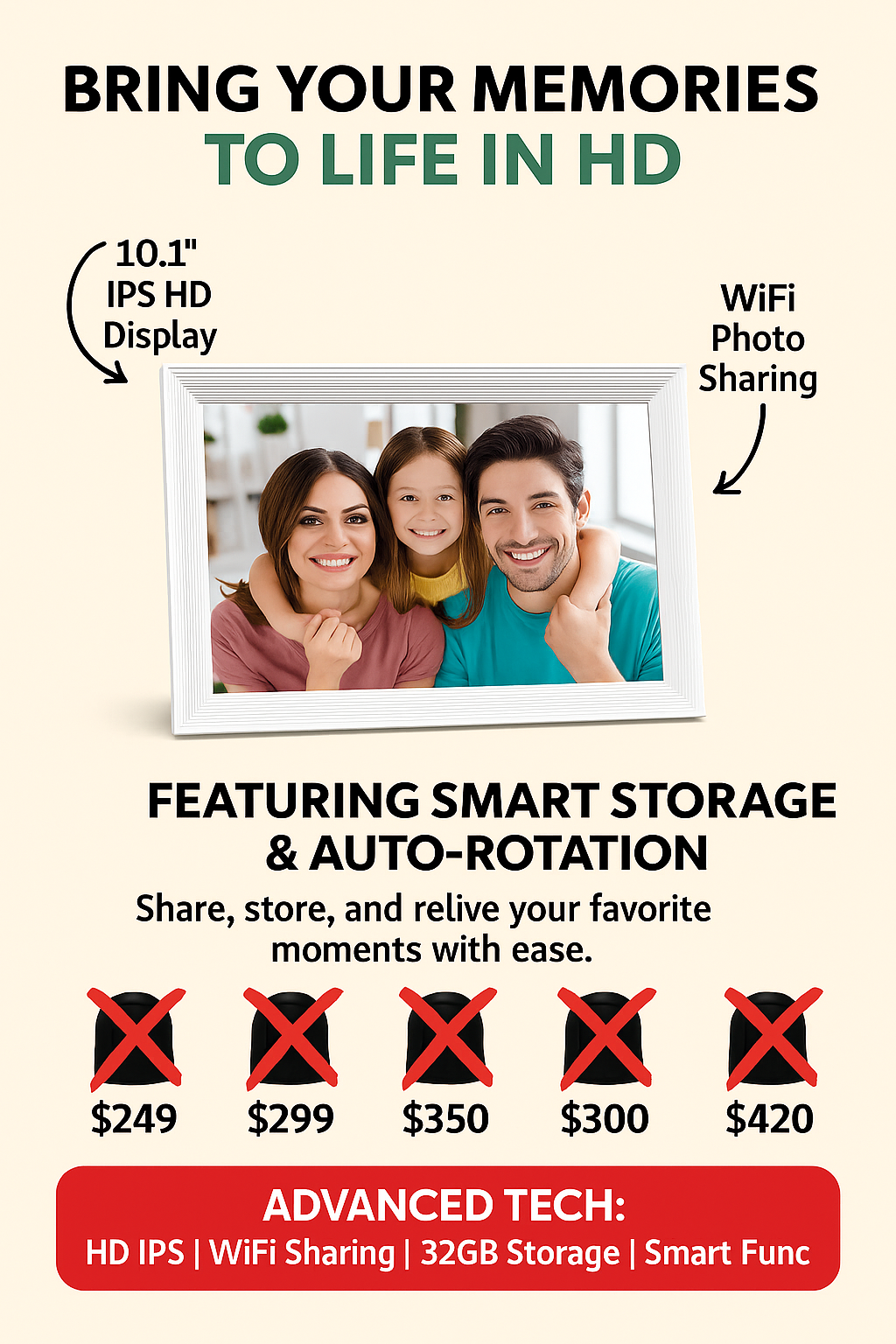 "I bought the Frameora for my parents, and they absolutely love it. The WiFi sharing is so easy—I can send them pictures of the kids instantly. The display quality is stunning, and it feels like the memories come to life right in their living room."