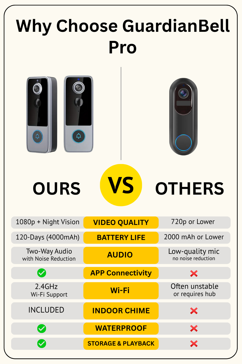 While most smart doorbells struggle with basic reliability, GuardianBell Pro combines intelligence, clarity, and convenience in one seamless device. Whether you’re at home or halfway across the world, you stay connected to your doorstep in real time. From its smart alerts to its effortless setup and long-lasting battery, it’s built for people who want their security system to be as smart as the rest of their home.
