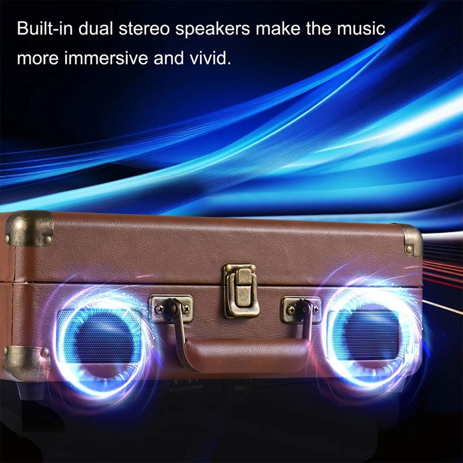 Dual stereo speakers deliver rich, immersive sound straight from the player — no need for external setup. Enjoy your favorite records with clarity and depth wherever you are.