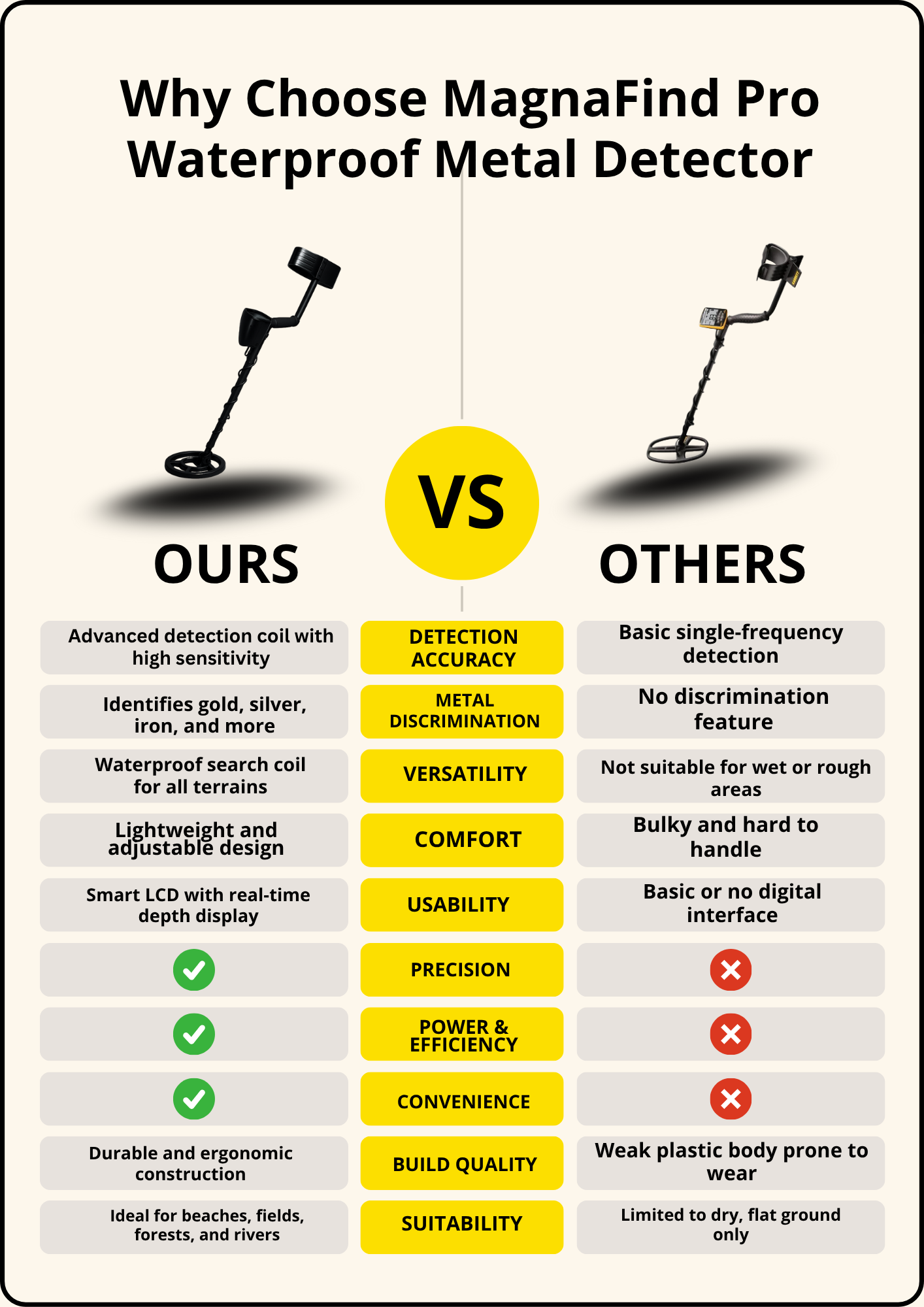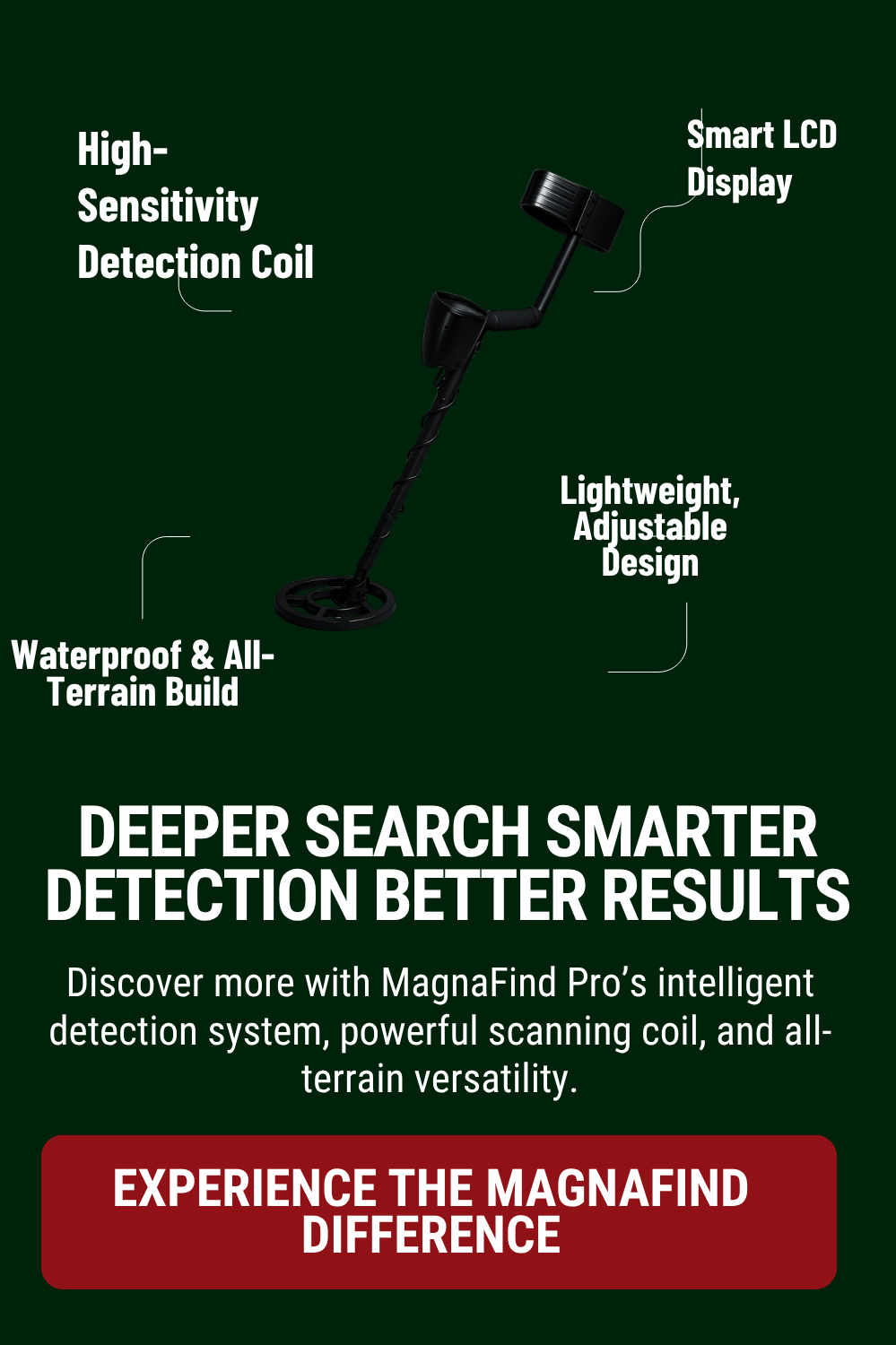 Professional-grade performance at an affordable price. The depth indicators are remarkably accurate, and the adjustable sensitivity handles mineralised soil beautifully. I’ve used the MAGNAFIND PRO across forests, fields, and beaches with consistently excellent results throughout.