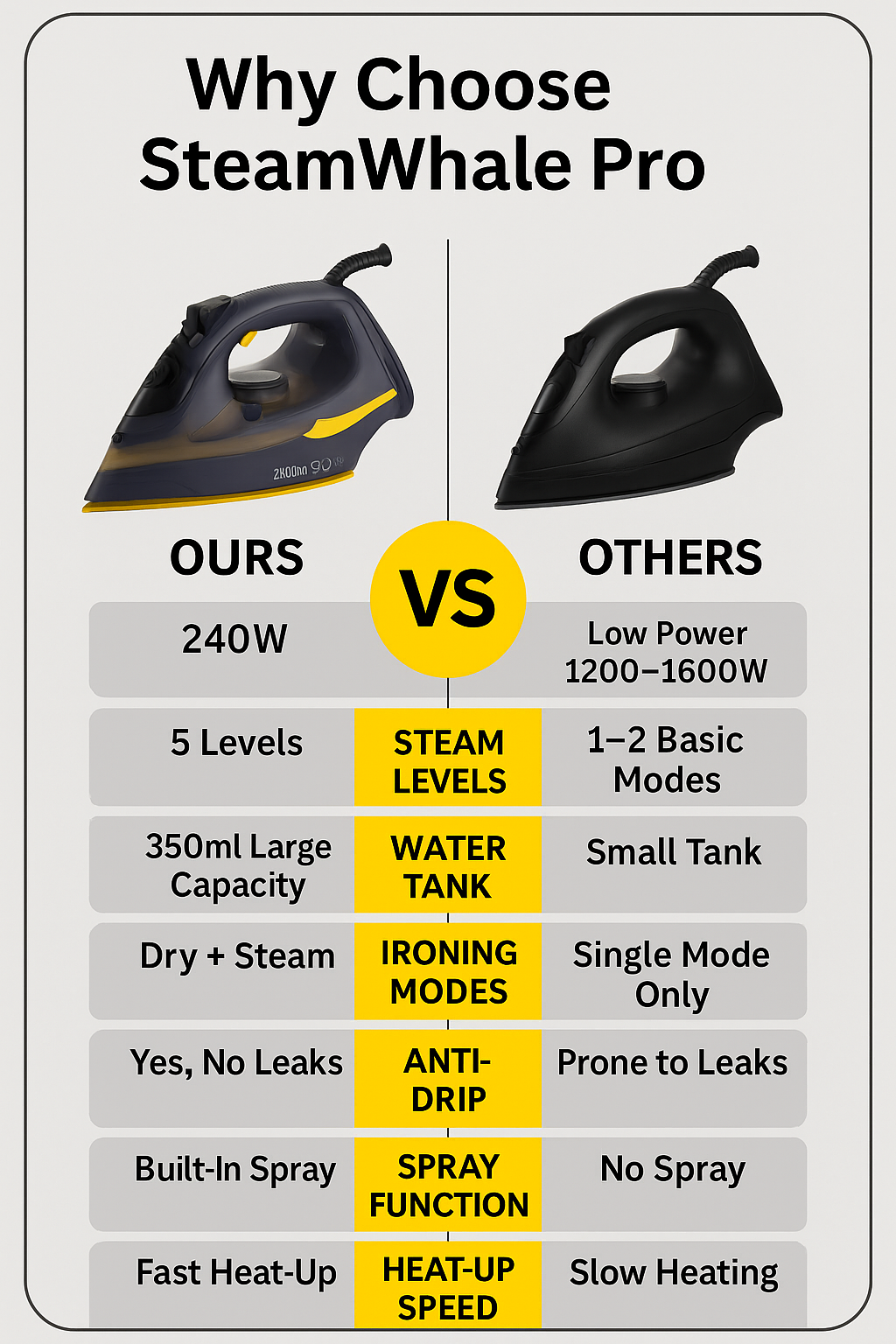 With 2400W of heating power, the SteamWhale Pro releases a strong flow of steam that penetrates deep into fabrics. Stubborn wrinkles disappear quickly, leaving clothes smooth and fresh with minimal effort.