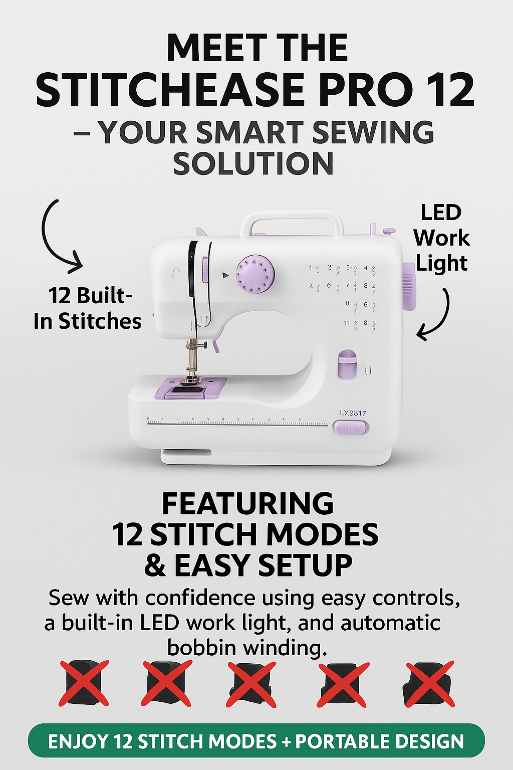 I was able to start sewing in minutes without frustration. Most sewing machines feel overwhelming to set up, but the StitchEase Pro 12 makes it easy with a clear threading guide and automatic bobbin winder.