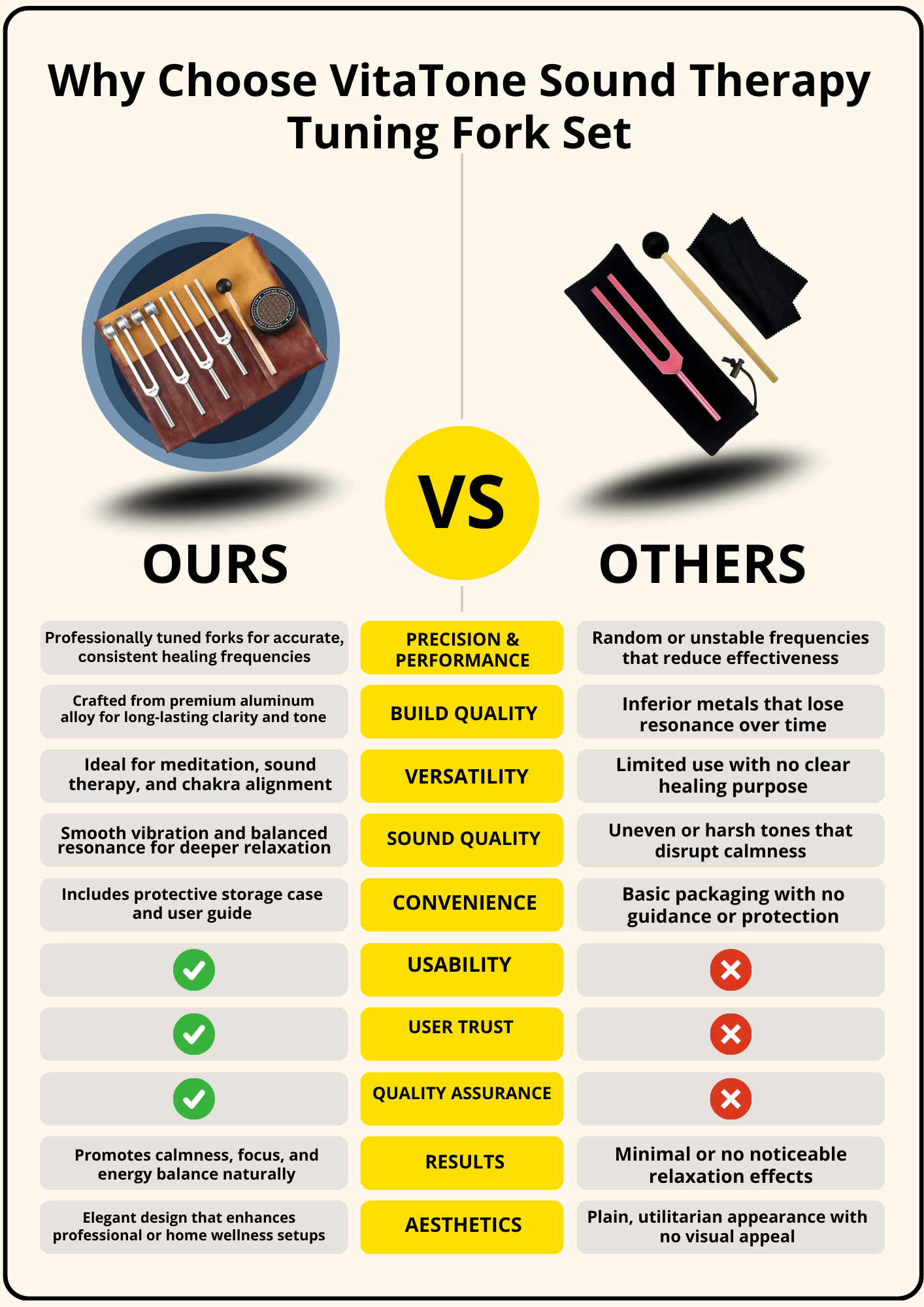 Each fork is perfectly calibrated to deliver pure, stable vibrations — enhancing relaxation, focus, and energy balance throughout the body.