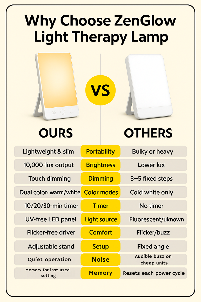 I originally bought the Zenglow for myself, but I’ve also started using it near my parrot’s perch (at a safe distance, of course). It’s amazing how much more active and cheerful he seems with the extra daylight. It really works for both of us